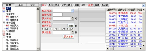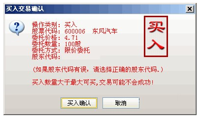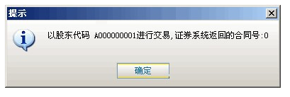 如果信息有误还可以取消 返回上图继续填写下单信息,如果正确,当确定之后会返回一个提示信息,内容有股东代码以及合同号,如果有其他情况返回原因。(同买入)