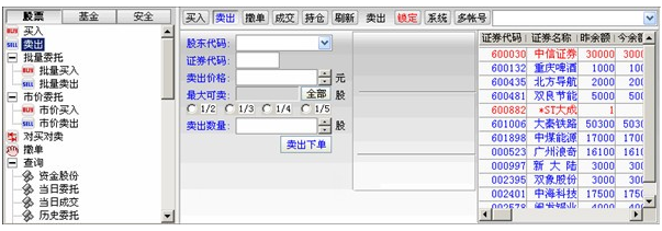 当确认输入无误之后,点击下单会出现确认信息。点击"全部",卖出数量自动设为全部可卖数量;同理,点 1/2 或1/3 或 1/4 或 1/5,卖出数量自动设为 全部可卖数量的对应比例。