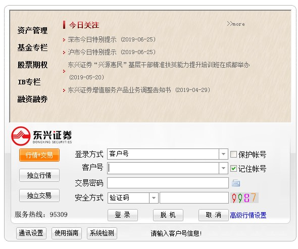 东兴证券超强版网上交易系统集行情、交易、资讯、服务为一体,提供高品质的行情交易通道与咨询服务支持。