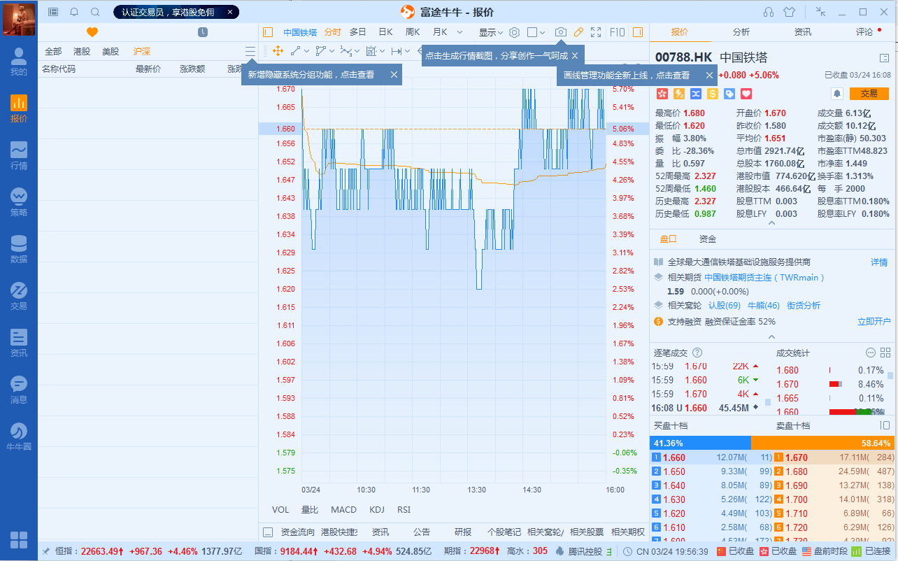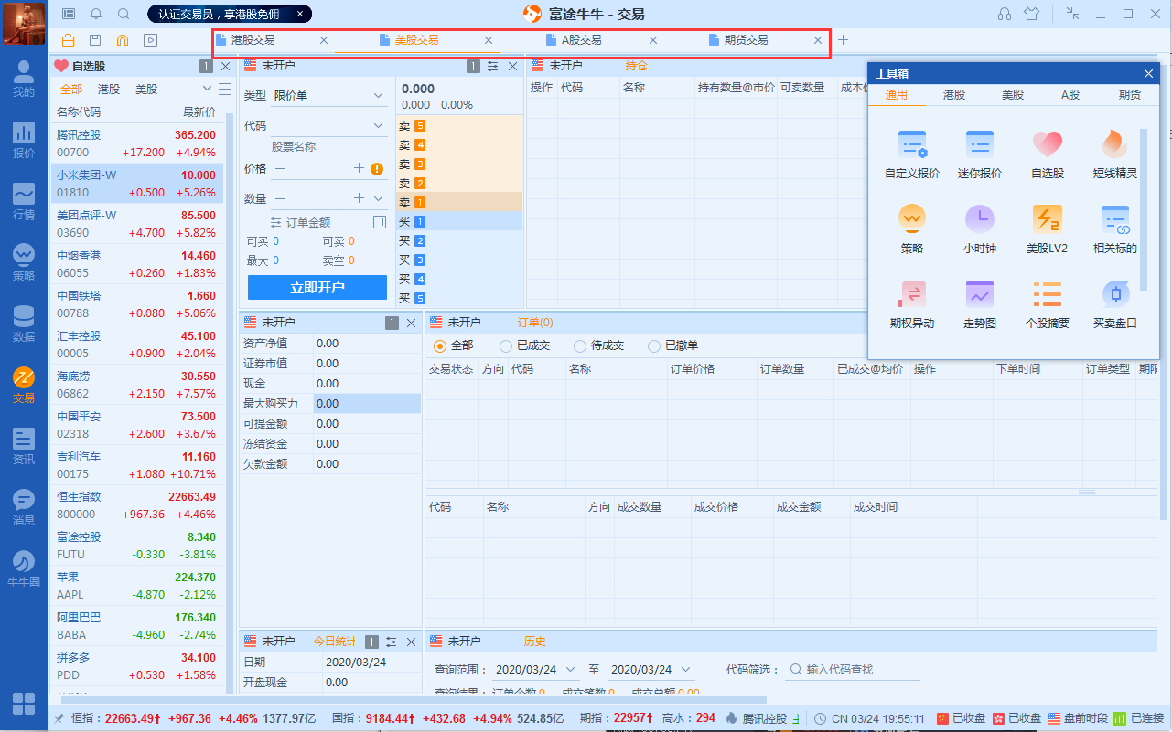富途牛牛,独具十档买卖盘+五档交易盘+百分百全真超深度实时逐笔成交明细+领先全球的港股实时行情富途牛牛,拥有史上最强自选股,同时产品简洁贴心、极速稳走自由走制智能云端、安全可靠,为您开启全新妙股体脸,助您做股市大赢家必不可少的炒股软件。三大市场 一键投资,市场上首个覆盖港股、美股及A股的一站式交易平台。