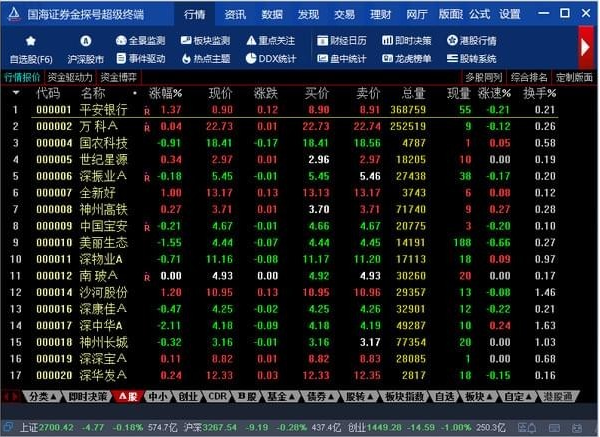 国海证券金探号超级终端是基于通达信全新客户端架构,结合国海证券金探号品牌打造的一款功能全面,界面新颖,专业快捷的PC行情交易软件。