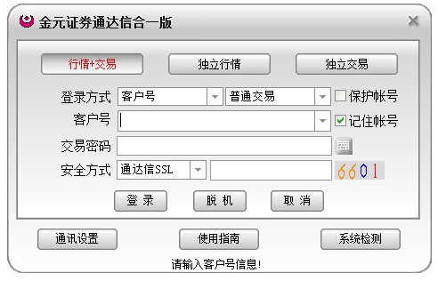 金元证券通达信该版本在保持原有合一版风格的基础上,优化和改进了客户端基础架构,客户端登陆速度快,安全性保护更高。金元证券是中国最具影响力的互联网财经媒体,提供全方位的综合财经新闻和金融市场资讯,覆盖股票、财经、证券、金融、港股、行情、基金、债券、期货、外 汇、保险等服务。