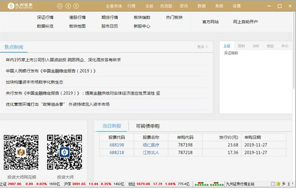九州证券网上交易(通达信版)是九州证券股份有限公司推出的“集高速(多市场)行情、自选股、专业资讯以委托服务于一体的多功能网上交易客户端。