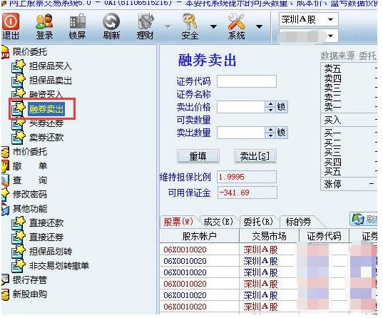 选择左侧框内【限价委托】-【担保品卖出】;担保品卖出的操作与担保品买入是基本一致的。
