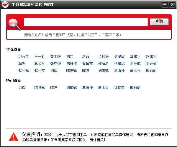 牛散就是因为大单吃进某支股票、频繁成为上市公司前十大流通股股东在术语上1被称为“超级散户”。牛散追踪器就是专门追踪这些人的所持有的股票名称的。实际上就是不知道买哪支股就跟着他们买,但是大家必须要懂的一点就是投资需谨慎