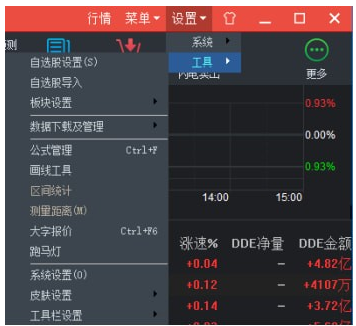 【工具栏】:位于菜单栏下,主窗口之上的位置,包含了学返回键、上下翻、修正键、全景视图、涨幅排行、新股日历、热门板块、资金流向、数据中心(机构评级、研究报告、业绩预测、龙虎榜、高管持股、宏观数据)、资讯中心、闪电买卖等功能,方便用户使用。
