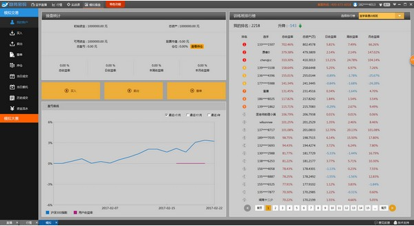 4、模拟操盘训练:100万模拟金,支持沪深A股交易,贴近实盘,个人操盘统计分析。