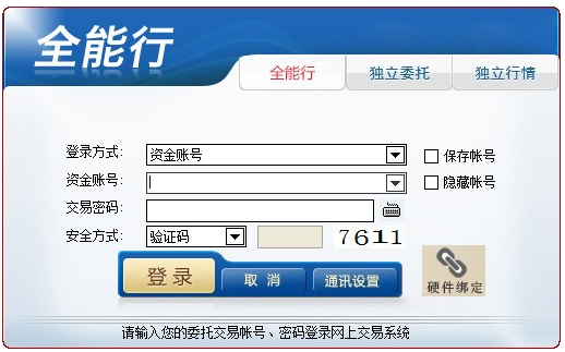 打开全能行后,点击交易,登录自己的佣金宝账户。