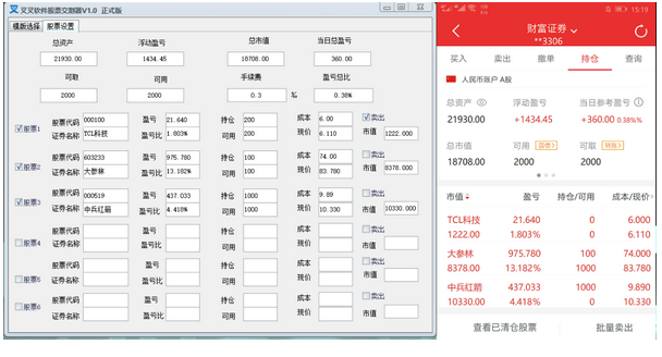 实时更新数据,高清保存可以生成电脑.手机端的持仓截图,交易截图