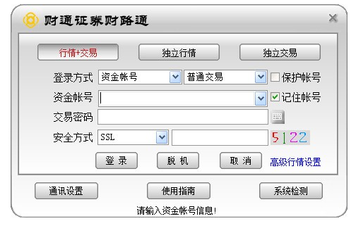 该软件集行情、交易、咨询、服务为一体,支持延时港股、期货行情、多银行存管、三板、基金分拆和动态口令卡校验、MAC地址绑定等功能。