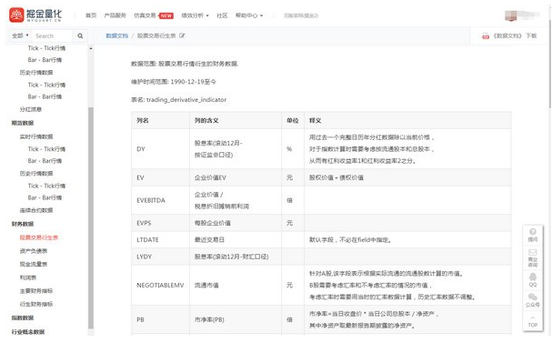 数据文档用于说明掘金支持的基本面数据和行情数据的范围: