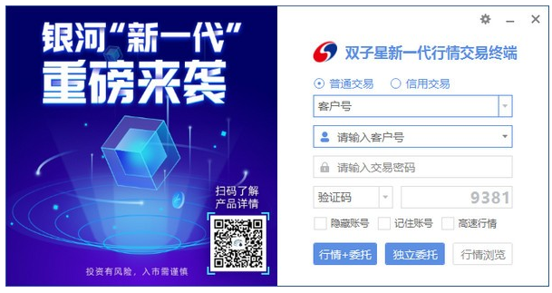 双子星新一代行情交易终端是银河证券采用最新AI技术倾心为投资者打造的新一代PC金融终端,它力求以科技赋能投资,助力投资者全方位的分析股票,轻松决策。