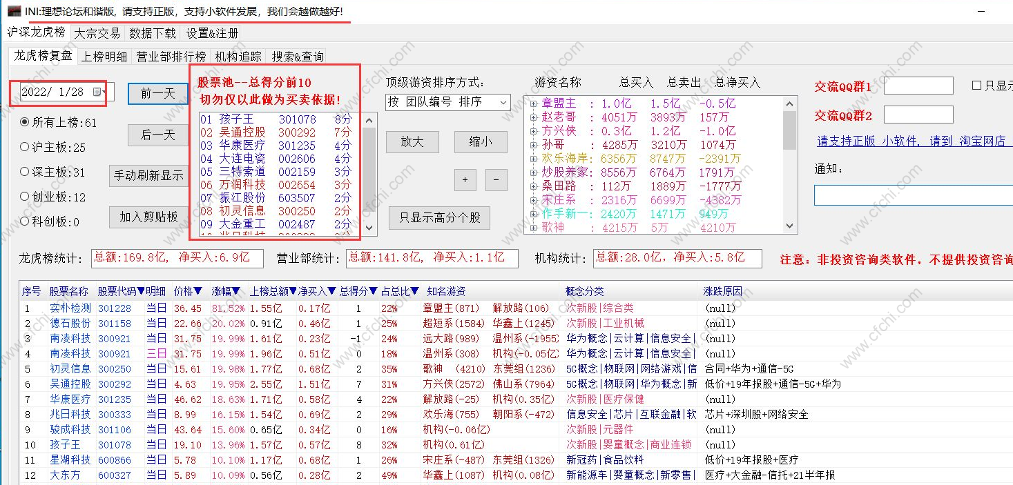沪深龙虎榜数据分析软件 V3.5 理想和谐版
