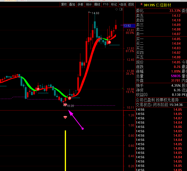 推荐理由:做短线和逃顶的短线指标,一般可持股周期2~3天,看短线的趋势,指标无未来函数,不漂移,信号具备一定的实战操作,可利用性较强。