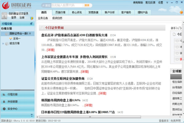 国联通宝是国联证券网上证券综合服务平台并整合了国联证券强大的资讯和服务资源,开发的集行情交易、资讯、研究报告、账户分析、在线服务、分析工具等产品的综合性终端。