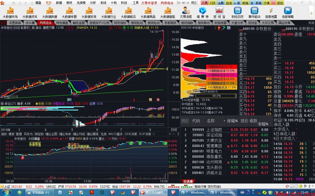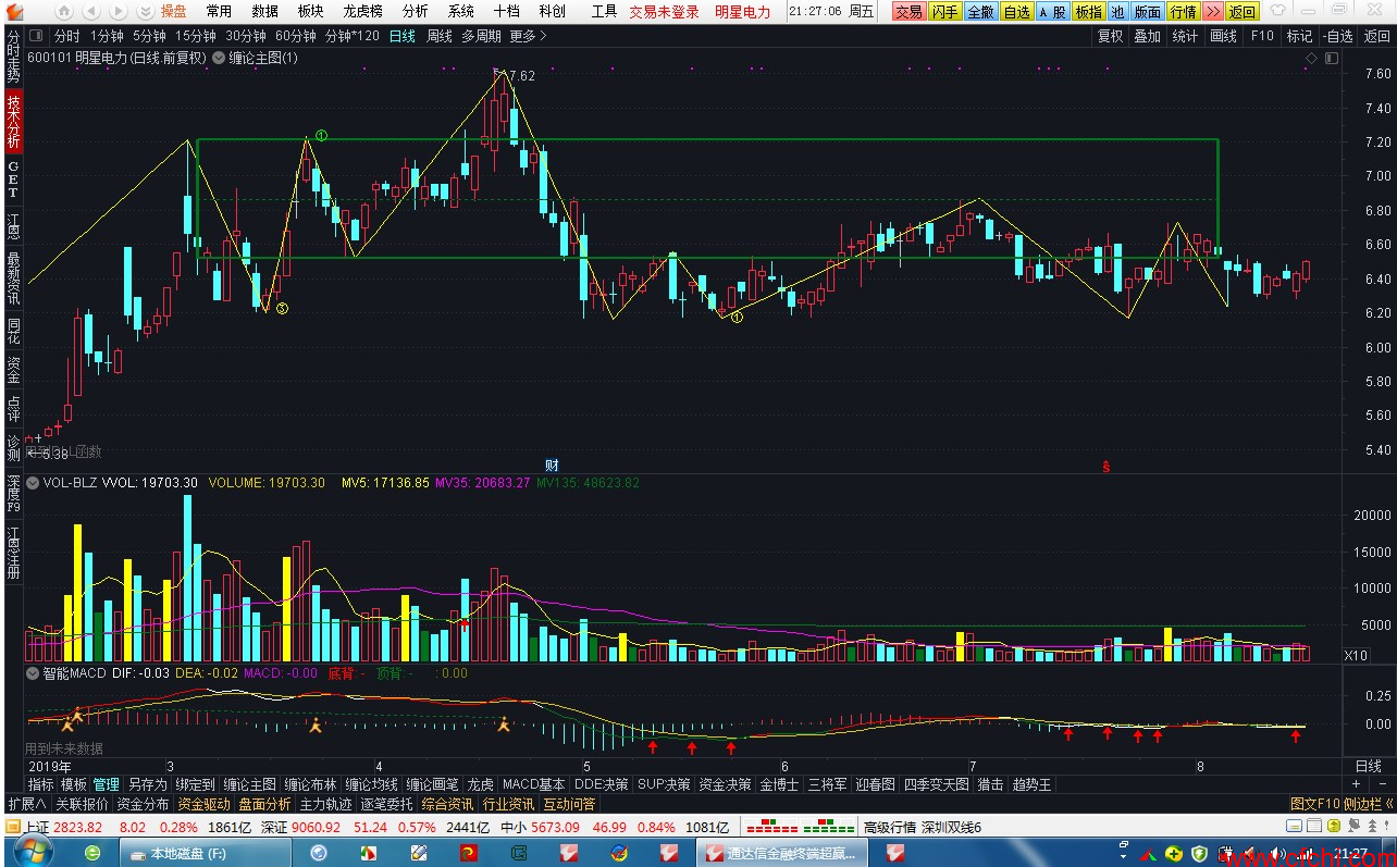 推荐理由:图形辨识度高,柱子长短代表力度,白色代表洗盘,红色代表出货,黄色代表拉升。可以导入诊断一下你手持个股在什么阶段