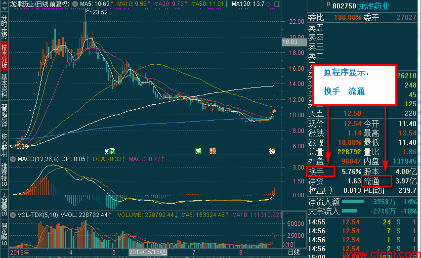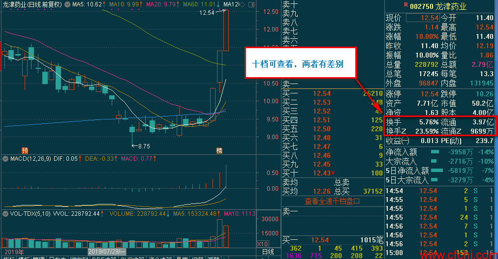 2、以龙津药业(代码:002750)为例,流通3.97亿股,流通z(实际自由流通股本)只有9699万股。3、收费版才能查看的指标,此方法可直观显示出来。但是否有用,每个人的看法不同,各自见仁见智吧!