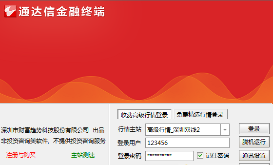 //注;除放水期间,登录高级行情不需要打通通道,其余时间均要用工具打通,账号密码任意填写.