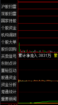分时图下有30余个链接菜单,可根据需要调整顺序,但注意链接有的是调用外部浏览器,有的是内置弹出窗口显示,有些像“深股扫雷、沪股扫雷”必须在设置移动设置插件的外部浏览器才能用;像“港通统计、资金分析、港通资金”等需要使用外部浏览器才显示完整正常,其它一般情况都是为内置浏览器打开。
