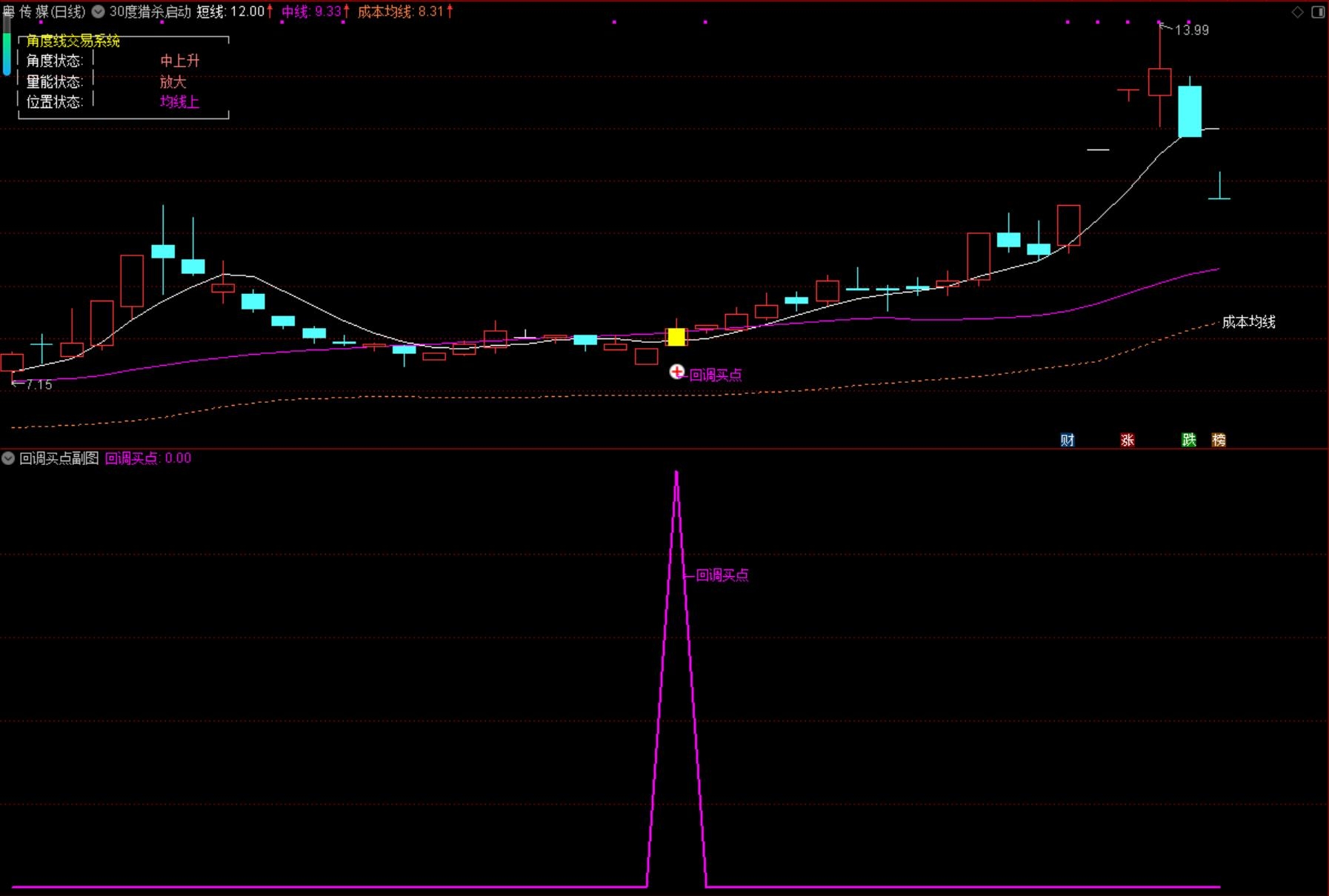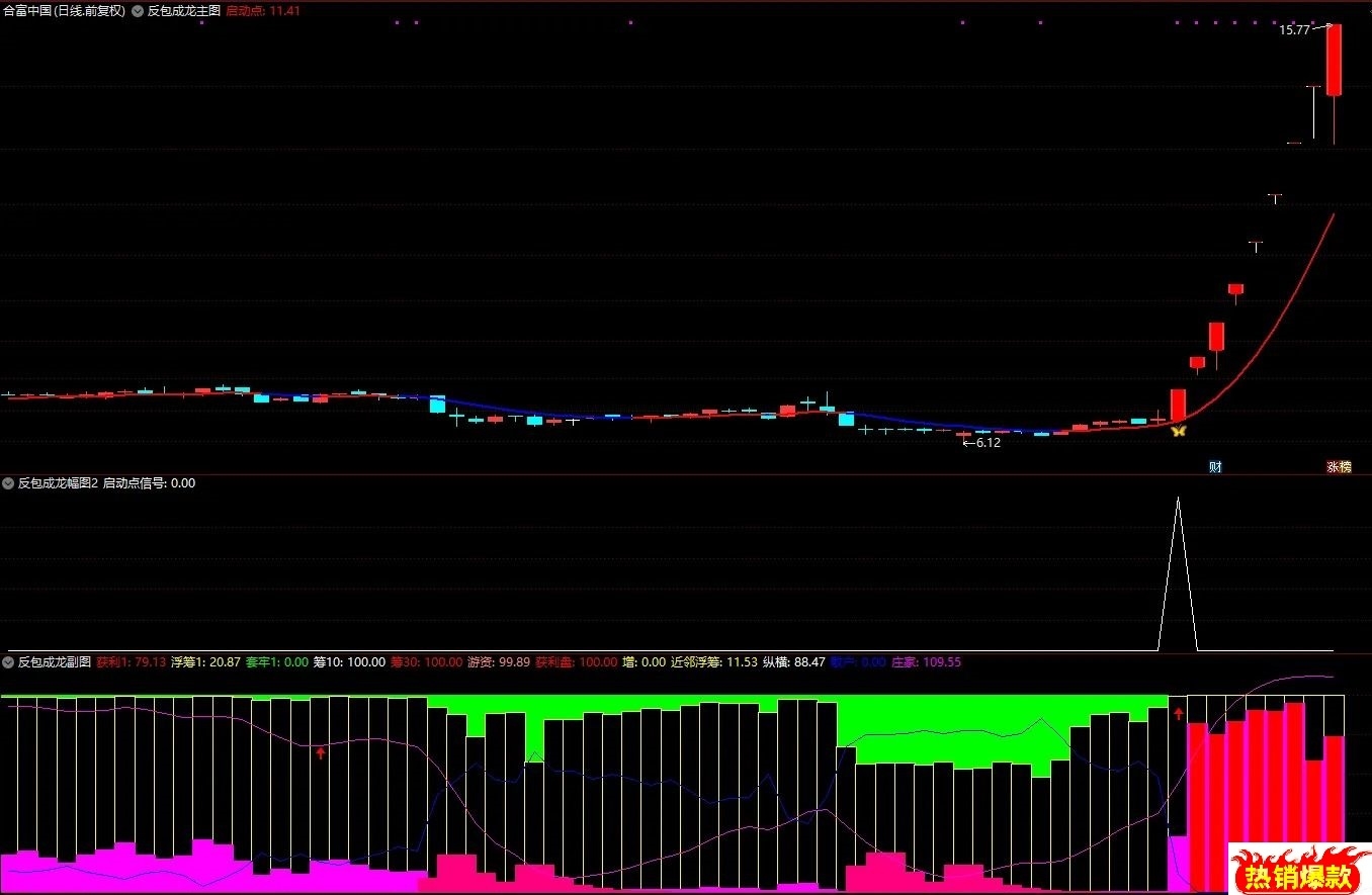 推荐理由:绝非简单一阳线包含三根均线的信号,独特编写思路,增加版。可以辅助快速选股,找出主力吸筹完毕后大阳线启动的个股,原理主力成本区