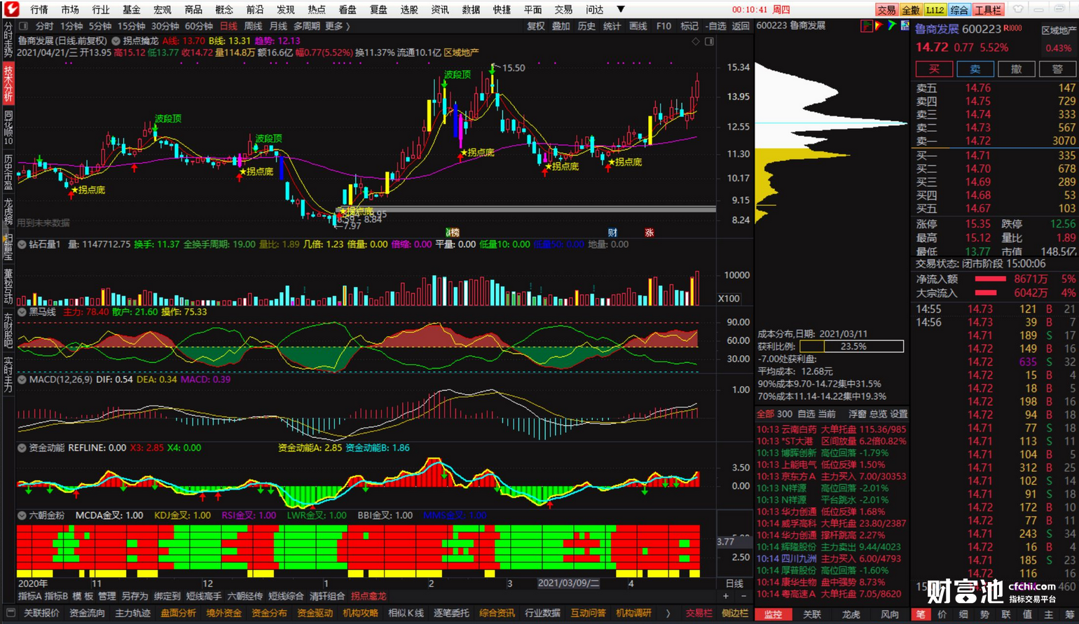 【财富池_波段分析】揭秘主力做庄波段分析指标支持多分时级别(波段分析)