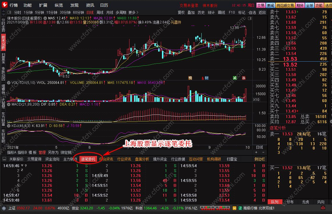 3、修改显示上海股票逐笔委托数据(上海股票千档数据不显示待后续解决);