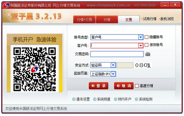中国银河双子星3.2版是集普通行情与沪深level-2高速行情于一体的网上行情交易系统。该系统不仅操作简单,功能强大,集行情、分析、交易、资讯于一体,更在原有基础上增强了推送资讯服务,集成了level-2高速行情。