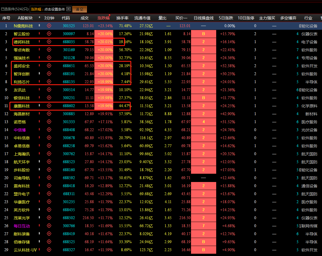 跨年妖一般都是各个板块的龙头股,特点是小市值(20-50亿),一路换手上去,每天都给你参与的机会;龙头股&跨年妖,一定是大题材,每个阶段的逻辑和题材都不一样,而且他必须是可以承上启下的题材,所以,目前市场内的强势股,如果你看得懂,就可以试错上车,校长给大家选出来了几个供大家参考娱乐,不作为投资依据,任意排列,不分排名哈:
