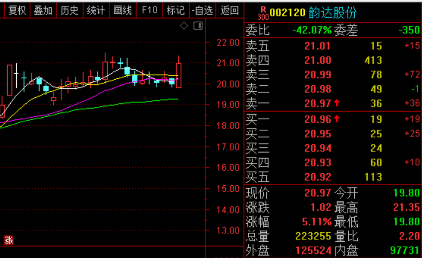 再次迎来 韵达股份 002120 的一个涨停。今天有点可惜了,本可以再多赚亿点点,没敢冲