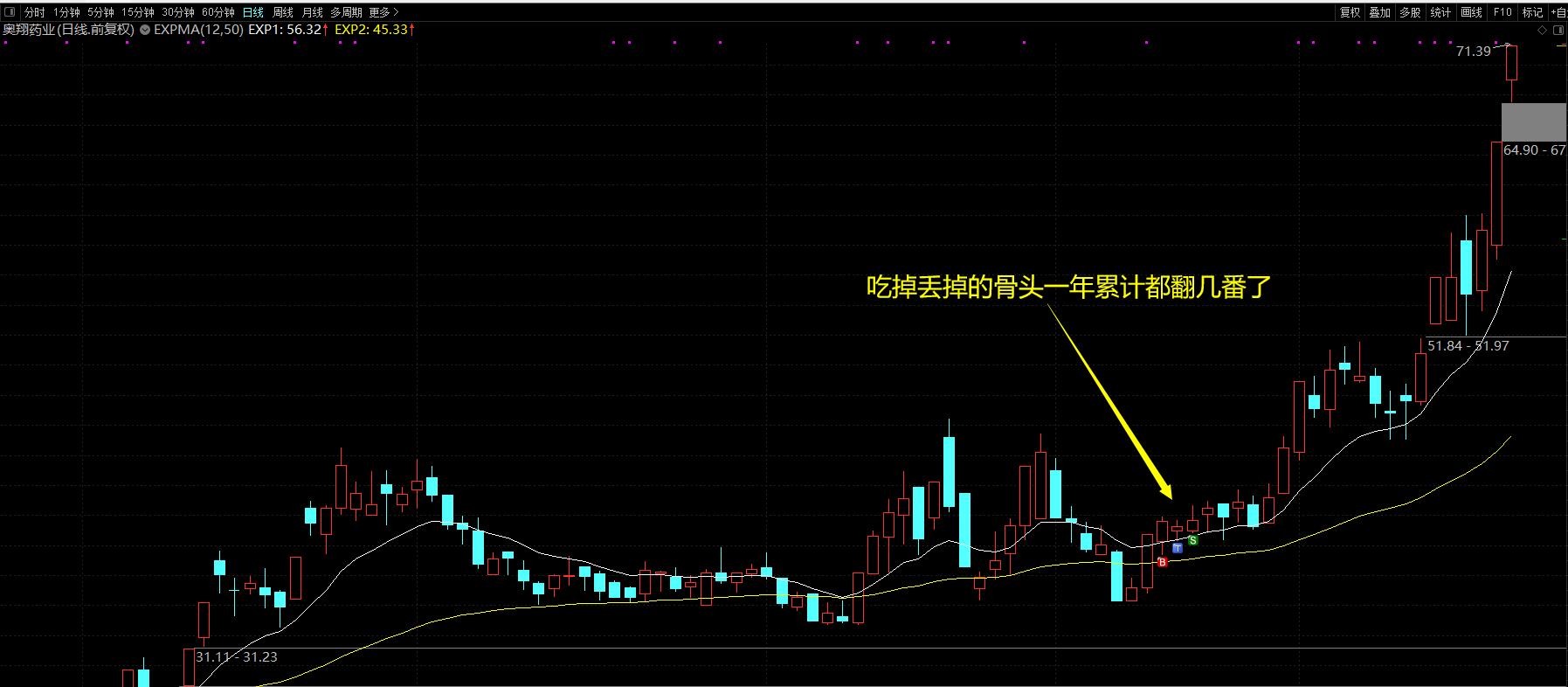 复盘近期吃过后被丢掉的骨头,发现骨头里面营养更丰富。稳定性下的胜率和利润最大化选择了稳定性。要吃更多利润要面临更多的风险,要稳健复利,就会经常的卖飞,甚至频繁的割肉.