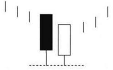 1、在下跌趋势中,出现两根最低价相同或相近的K线。